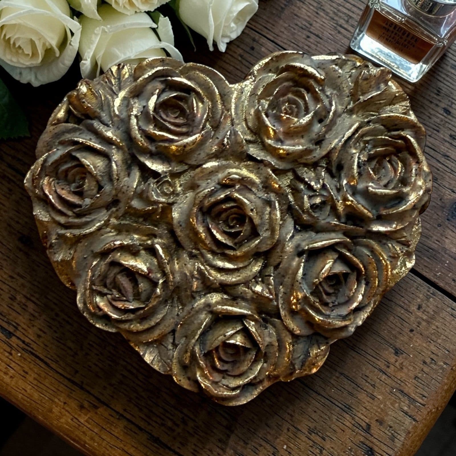 Gorgeous 'Gold Roses' Heart Trinket Box
