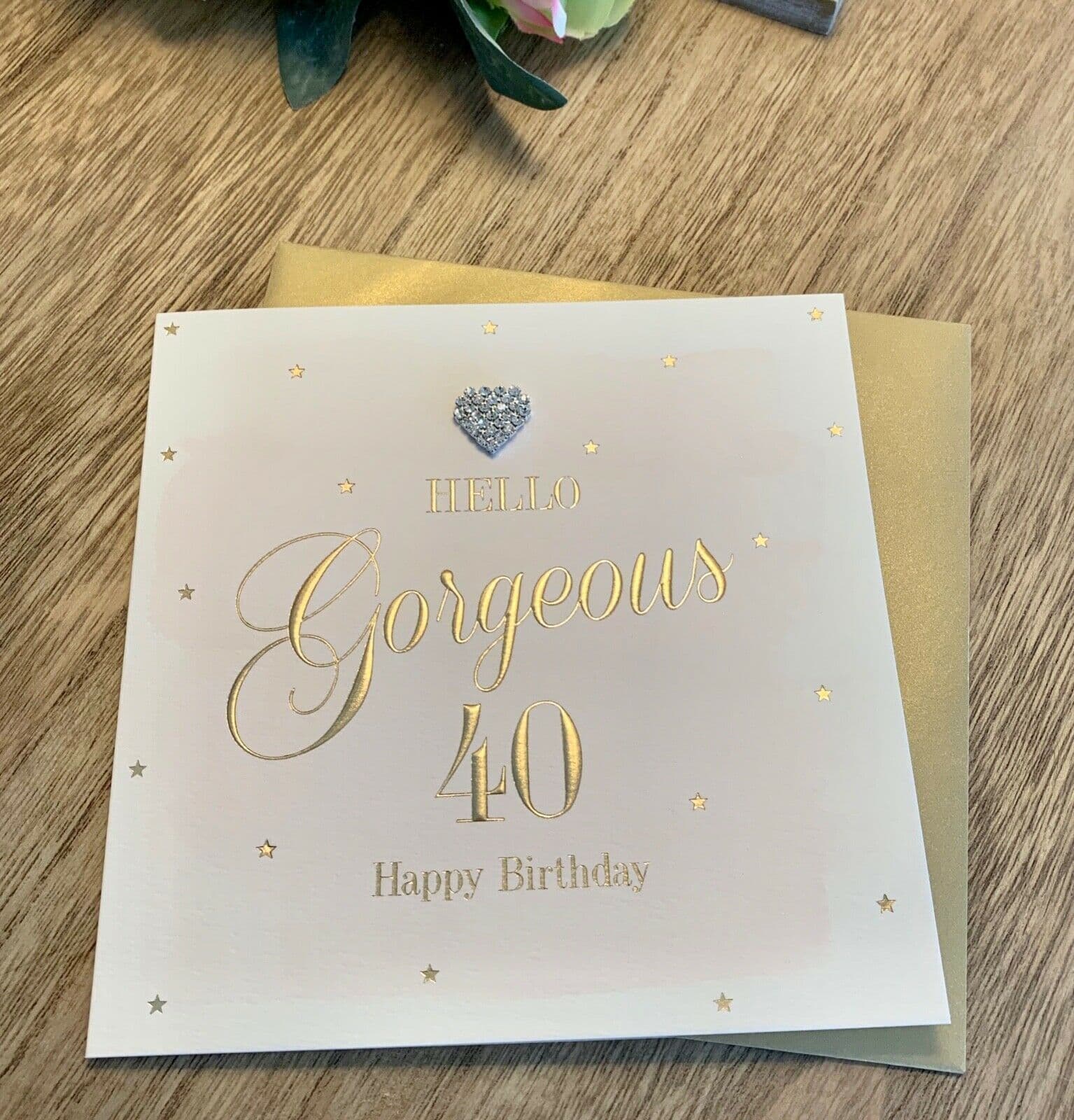 Gorgeous Luxury 'HAPPY 40TH BIRTHDAY' Card with Diamante Heart Embellishment
