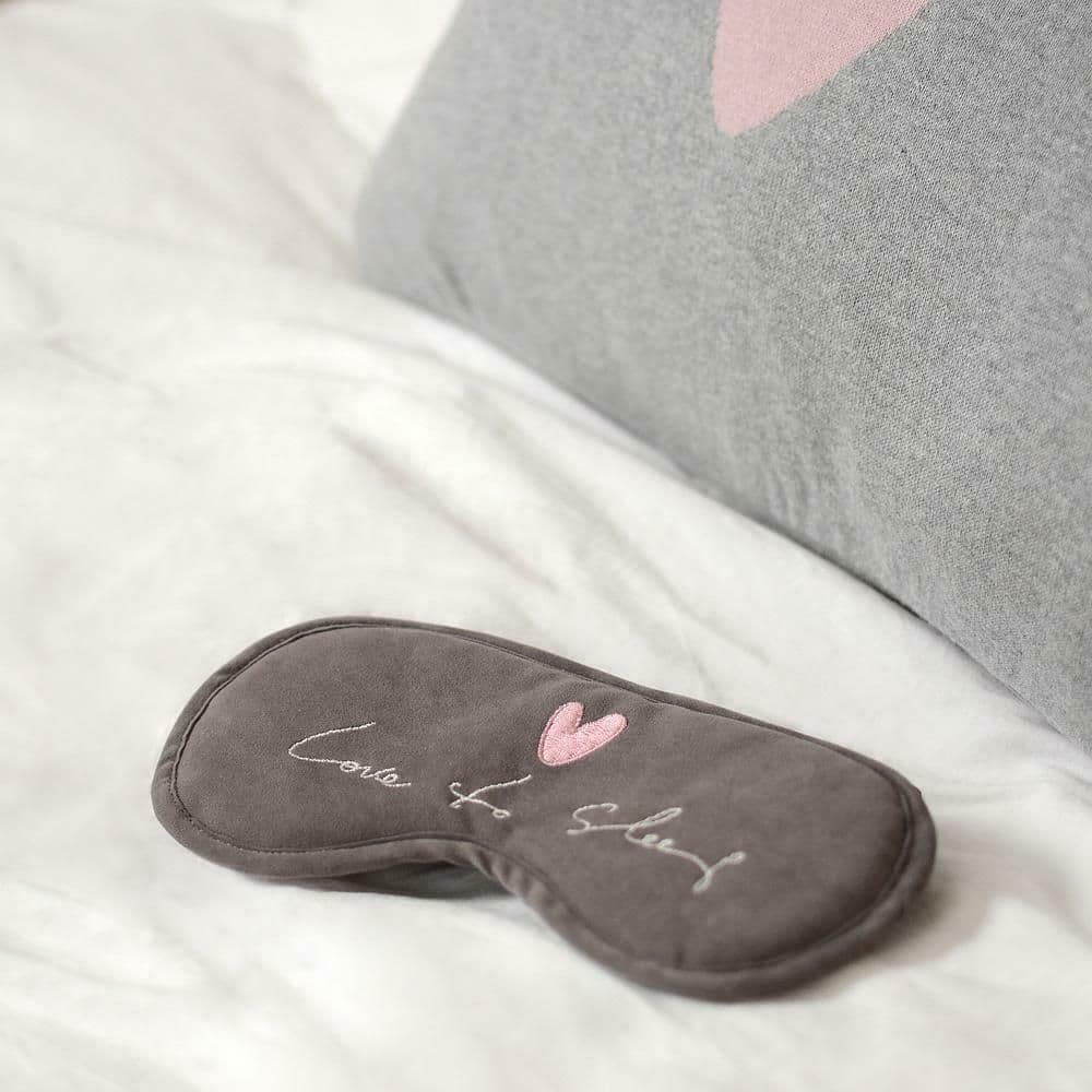 This stylish sleep mask made by Sophie Allport from the 'Hearts' Collection is just fab! With it's grey velvet front and super soft and silky reverse side, this mask provides a great blackout when trying to get a good nights sleep. This mask has a pretty embroidered pink heart with text 'Love to Sleep' in Sophie Allport handwriting. Just lovely!
