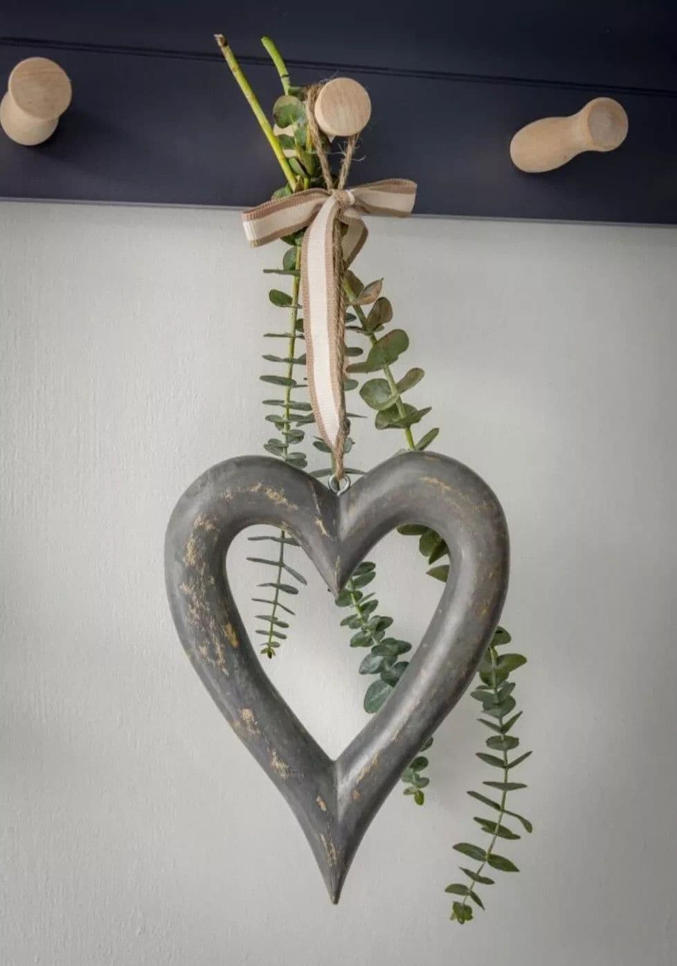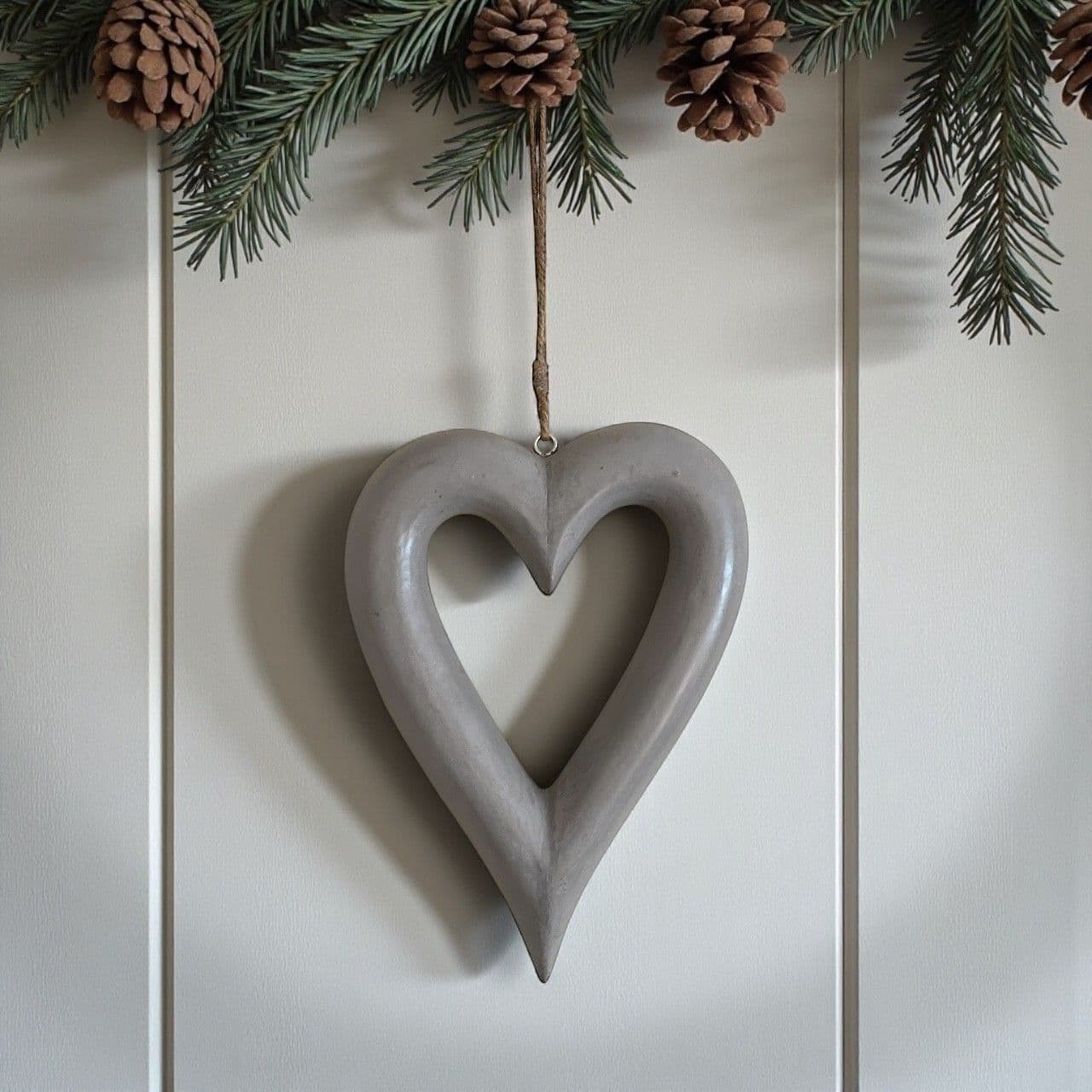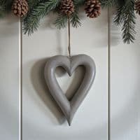 This gorgeous soft grey shabby chic style chunky hanging heart has its own rustic twine loop. Can be hung on its own or can be embellished with Christmas greenery or summery olive sprigs. So lovely!
